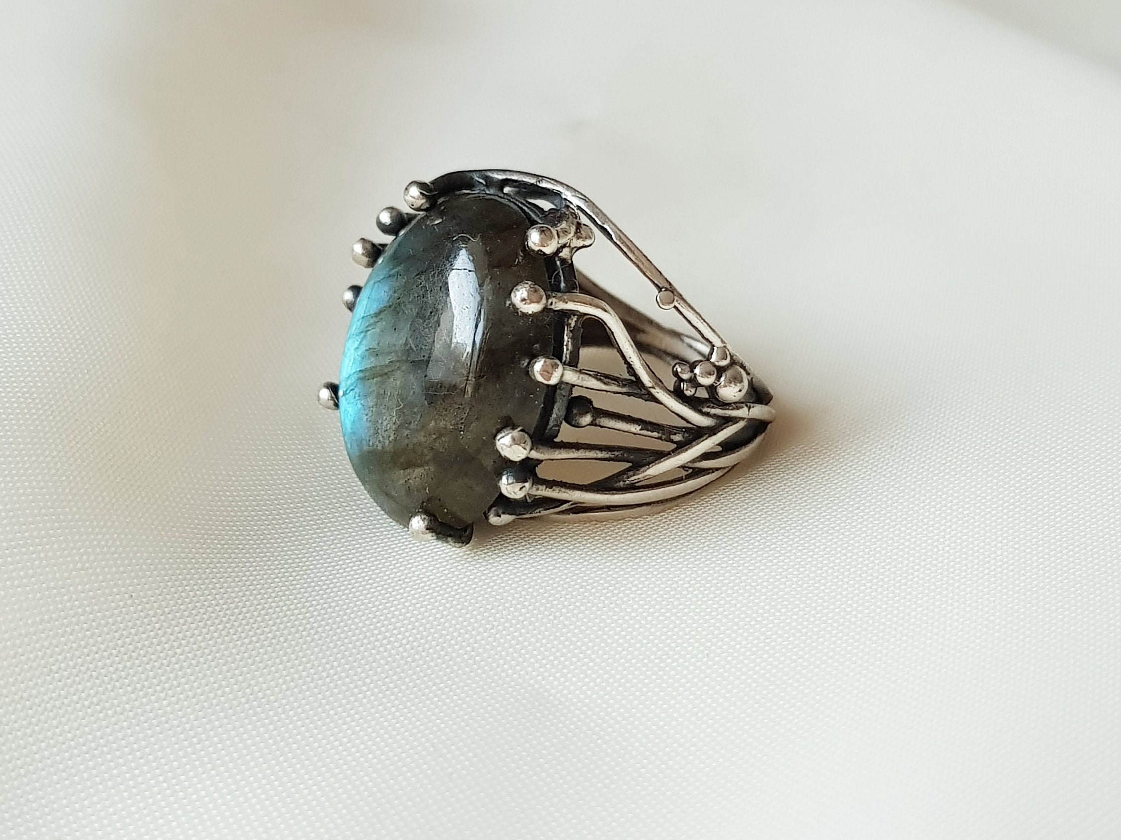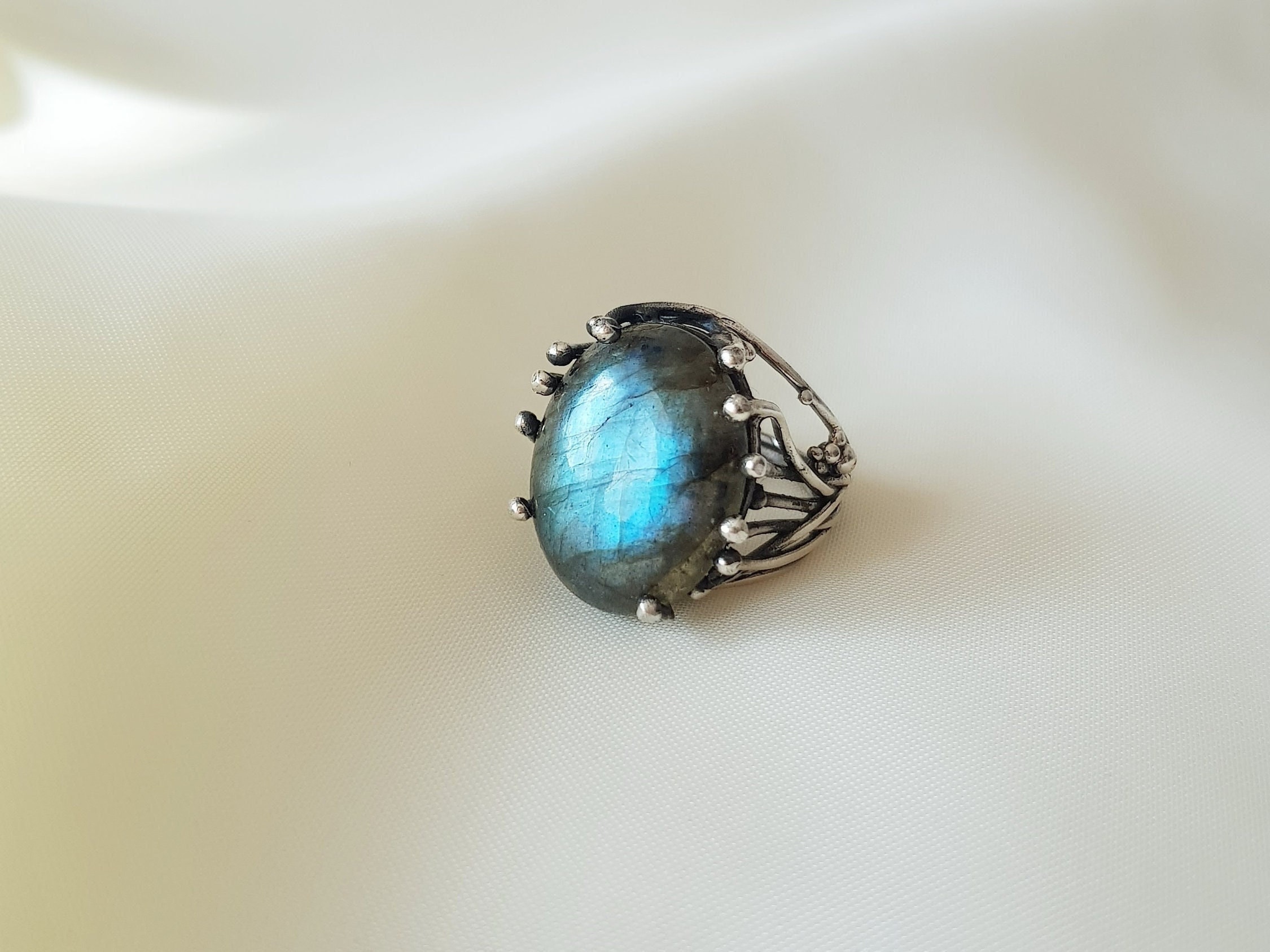 This 925 Sterling Silver Ring is purely handmade and natural Labradorite is used as gemstone.