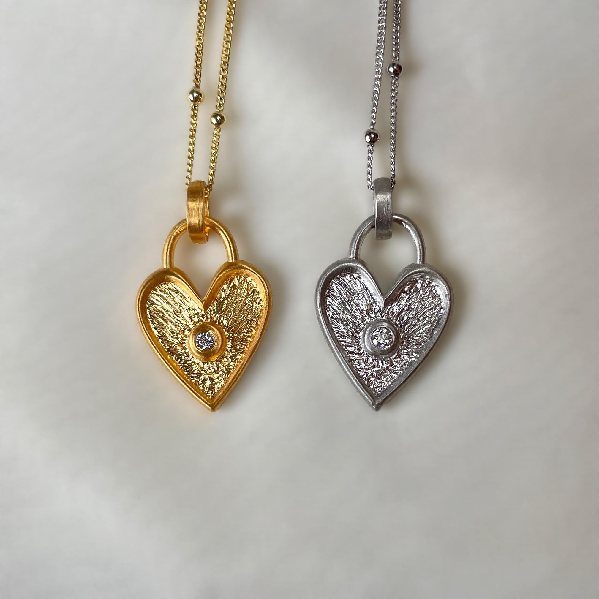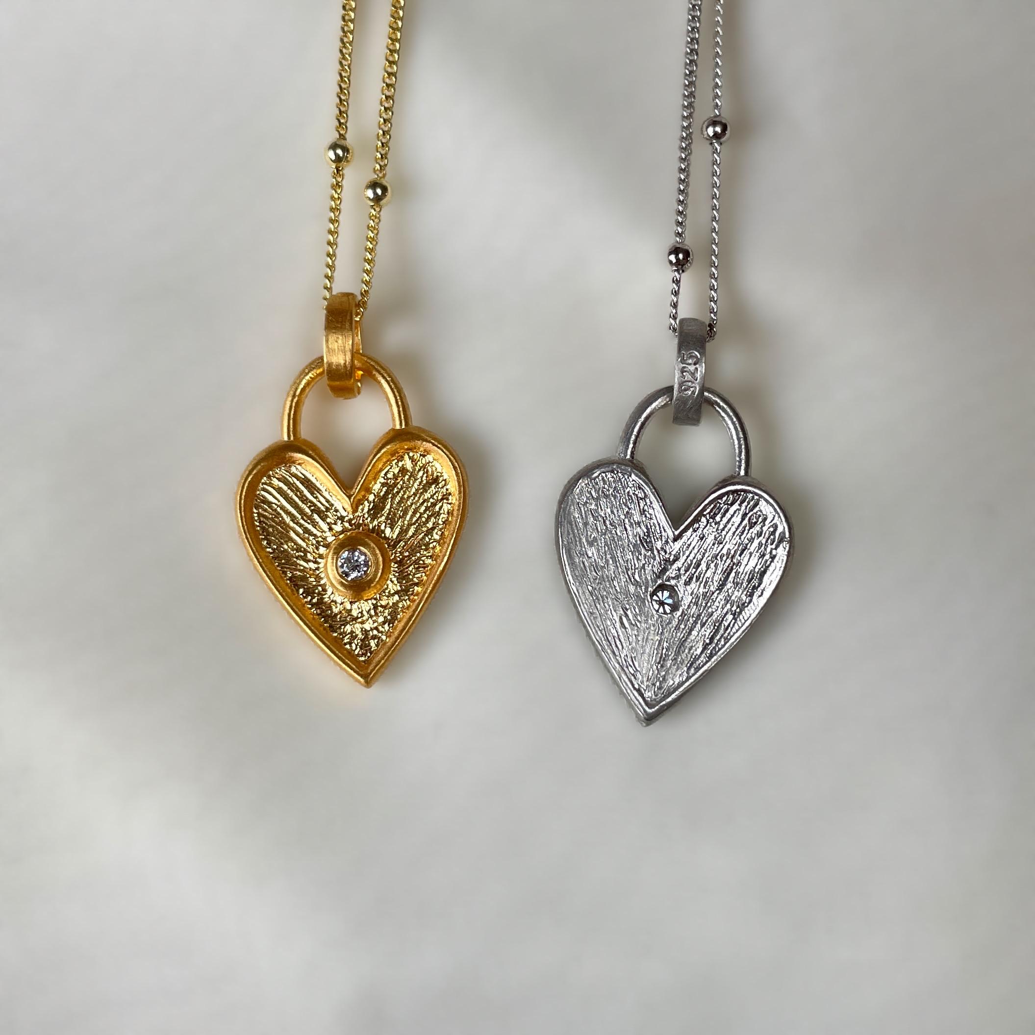 Moissanite heart pendant in 18k gold plated 925 sterling silver—a dainty, minimalist layering charm with a textured heart, hypoallergenic finish and gift-ready box! 💖