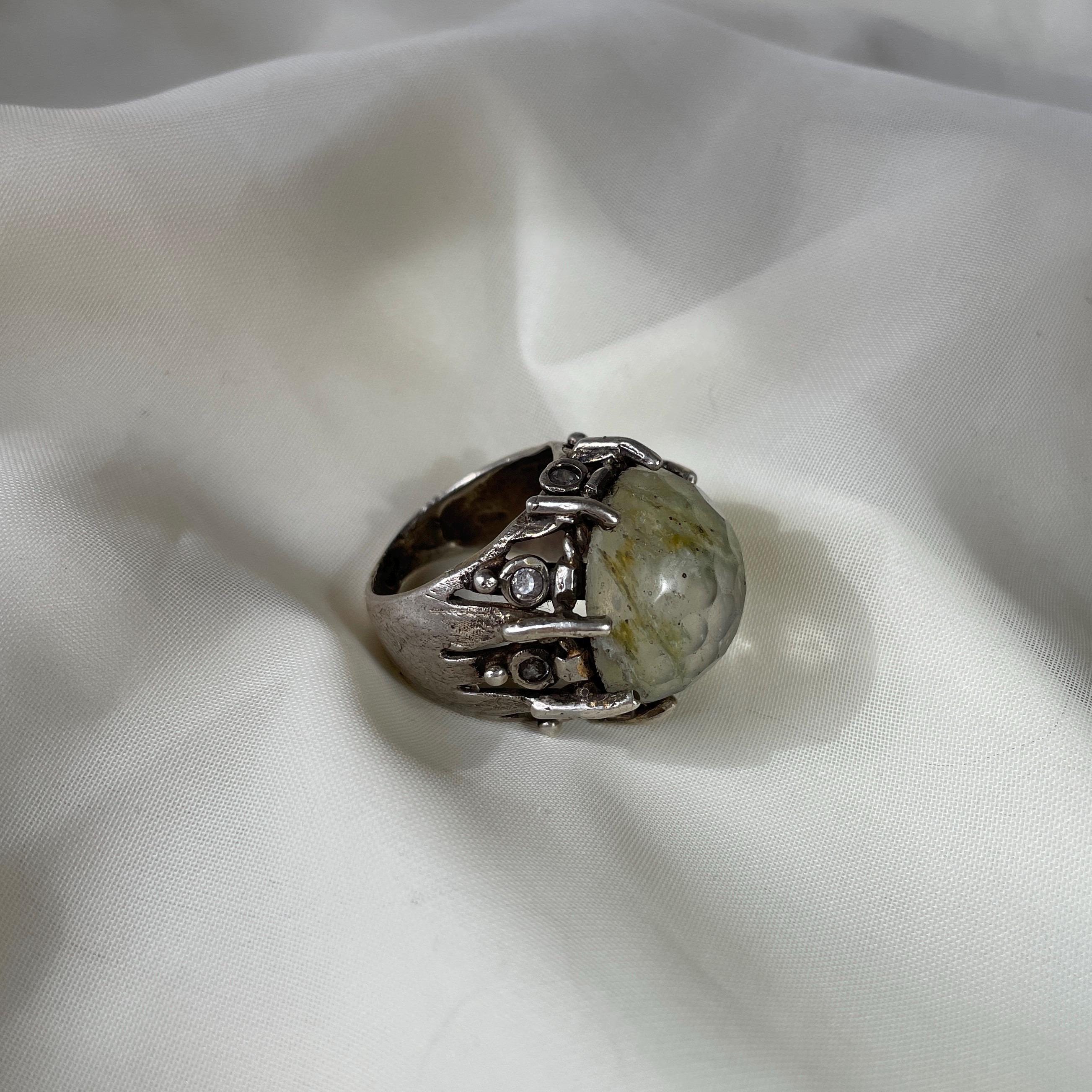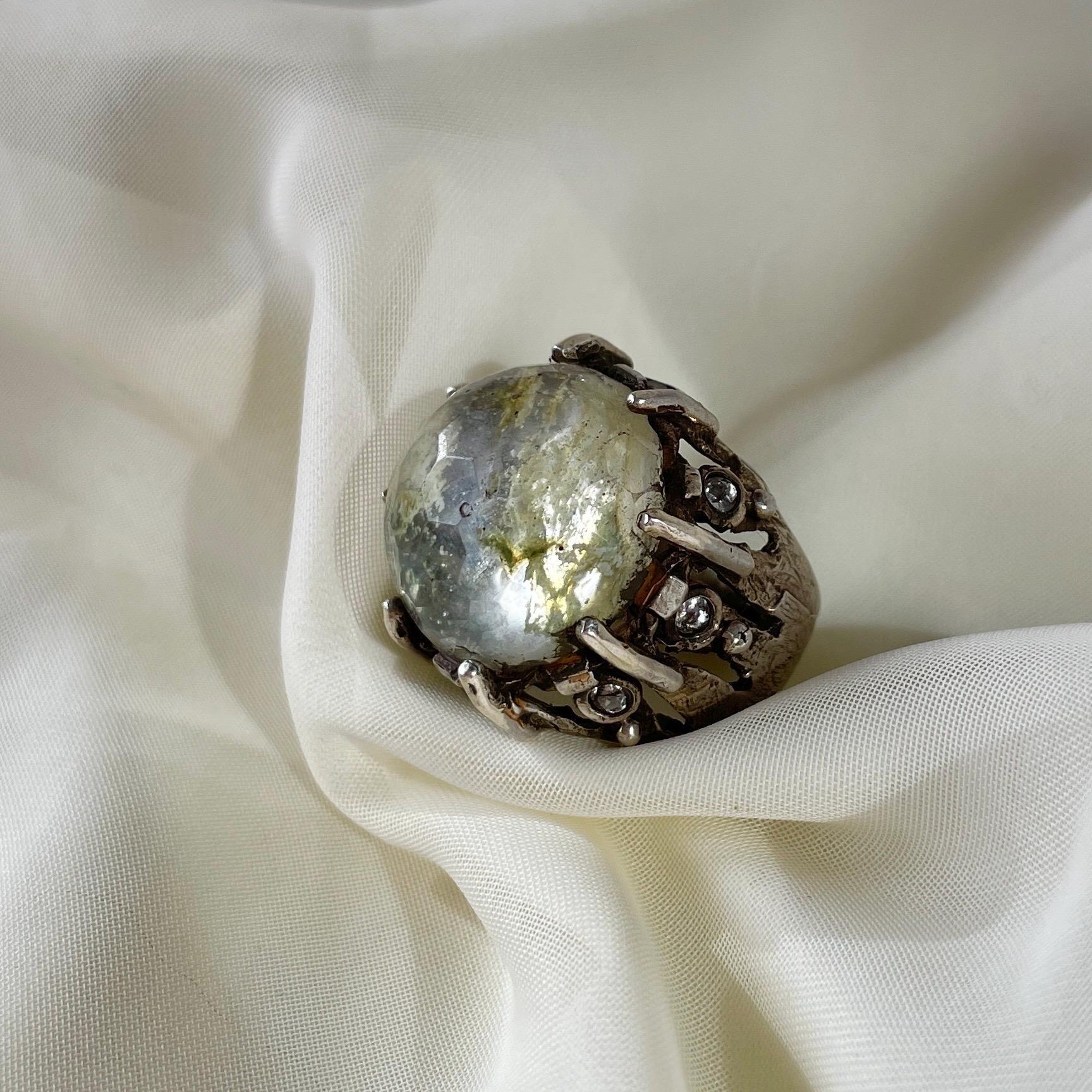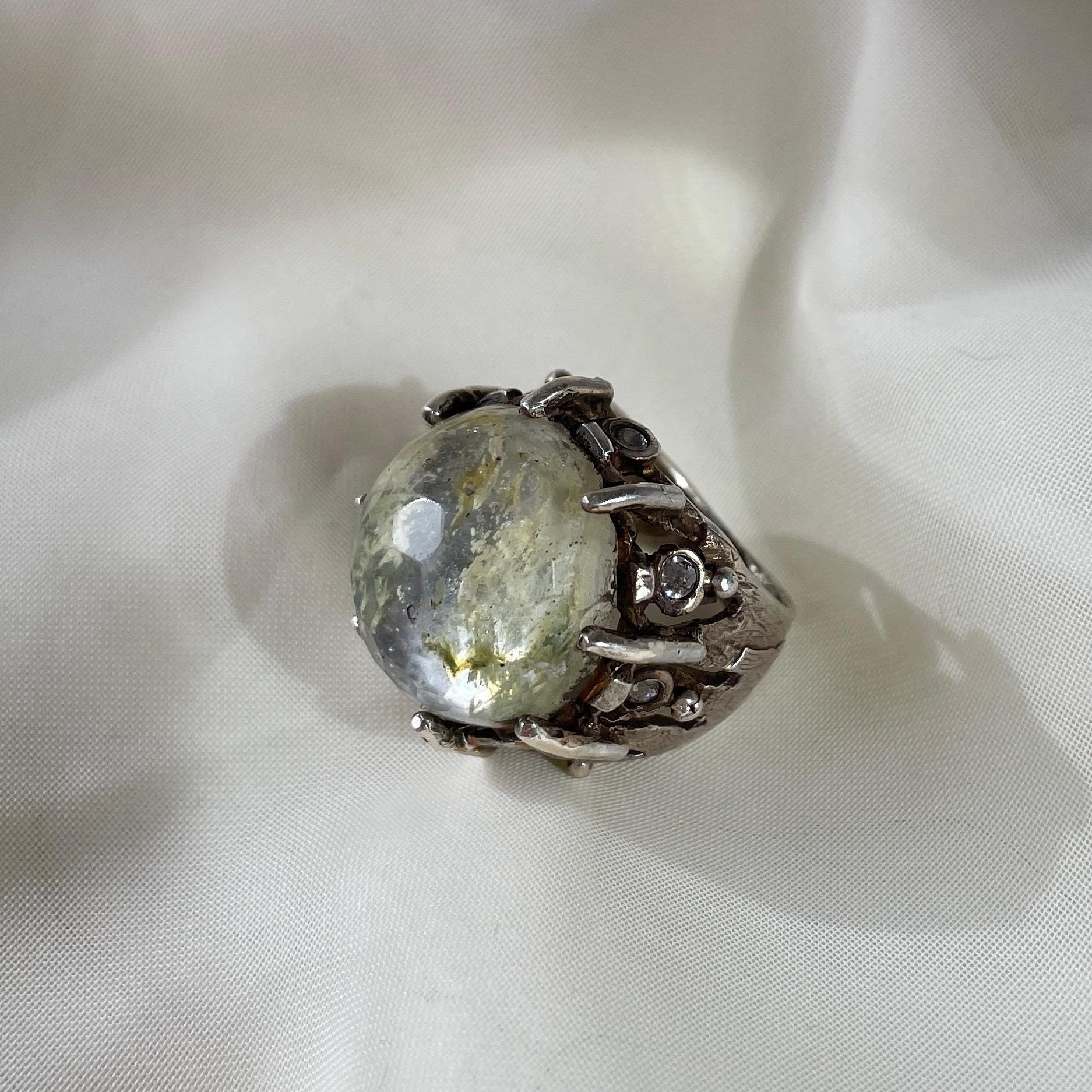 This stunning piece features a large dome-cut garden quartz stone, set in solid 925 sterling silver. The natural inclusions inside the quartz create a mesmerizing landscape — like a miniature world captured within the stone.